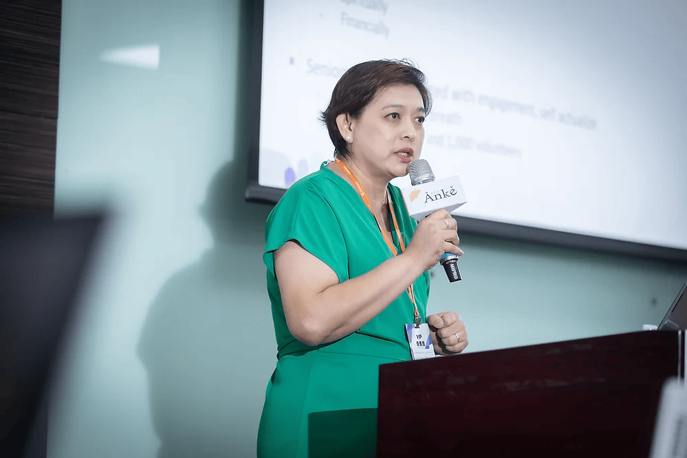 Karen Wee Siew Lin, Executive Director of Lions Befrienders Service Association (LBSA) delivered a speech at ACIF of Cares Expo 2024.