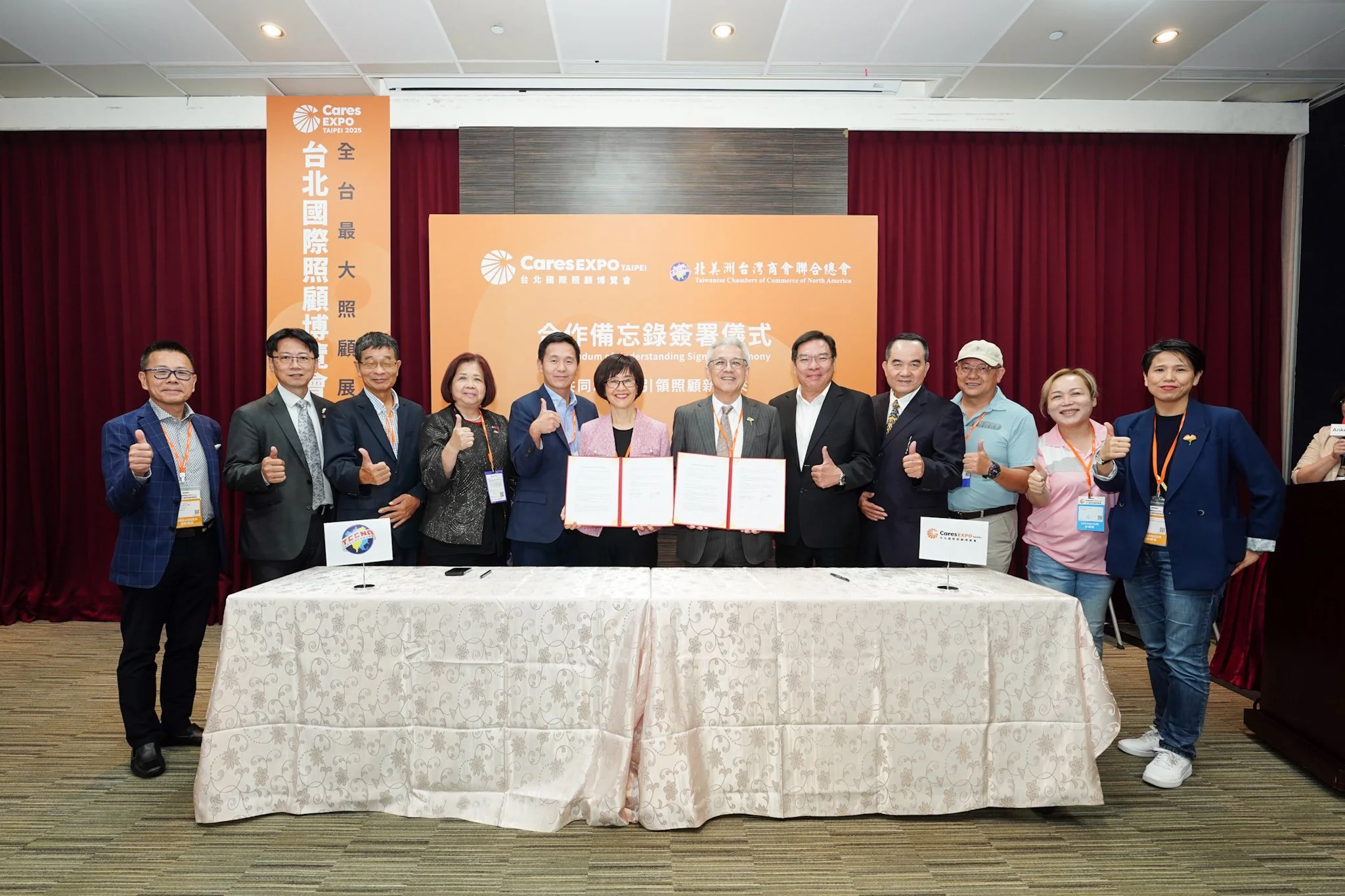 On September 27, during the 6th Cares Expo Taipei 2025, the event organizers and the Taiwanese Chambers of Commerce in North America (TCCNA) signed a Memorandum of Understanding (MOU) on-site, marking a new chapter in international collaboration within the aged care industry.